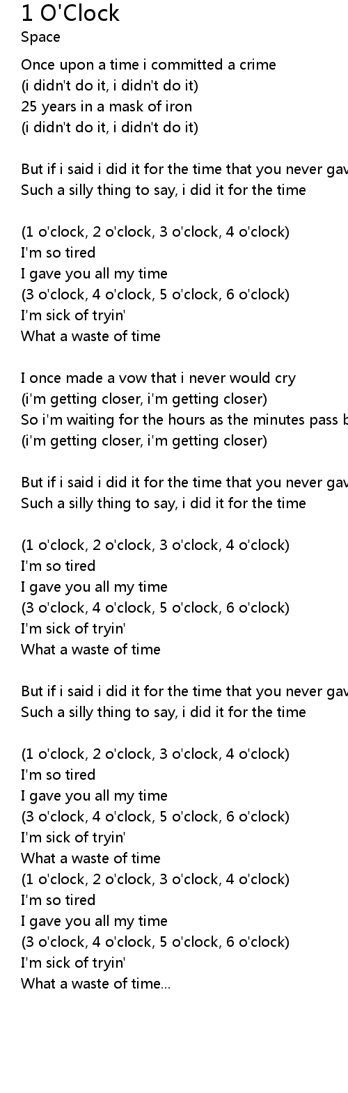 (1 o'clock, 2 o'clock, 3 o'clock, 4 o'clock) |