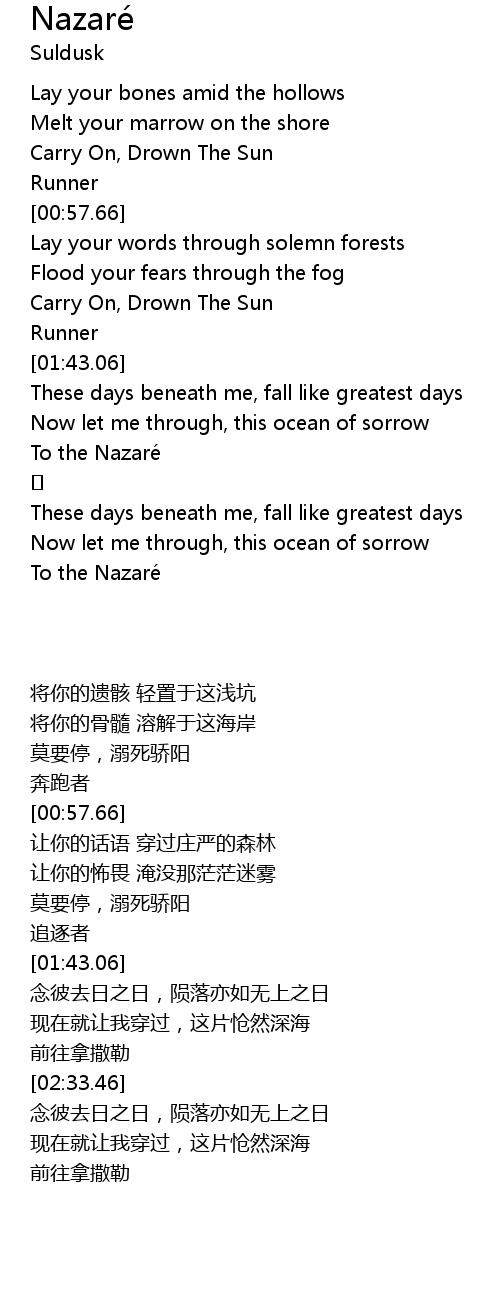 | [02:23.99] | To the Nazare |