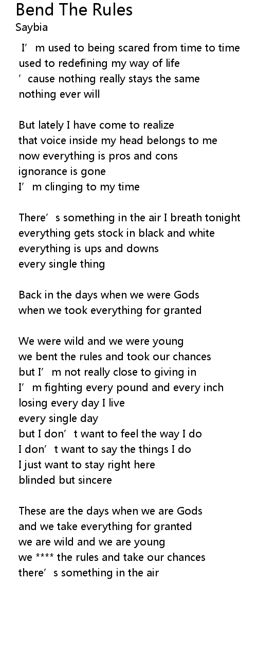 | 歌曲 | Bend The Rules |