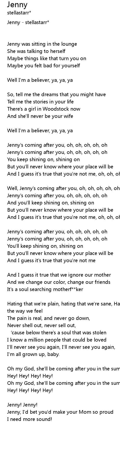 | Jenny's coming after you, oh, oh, oh, oh, oh | |
