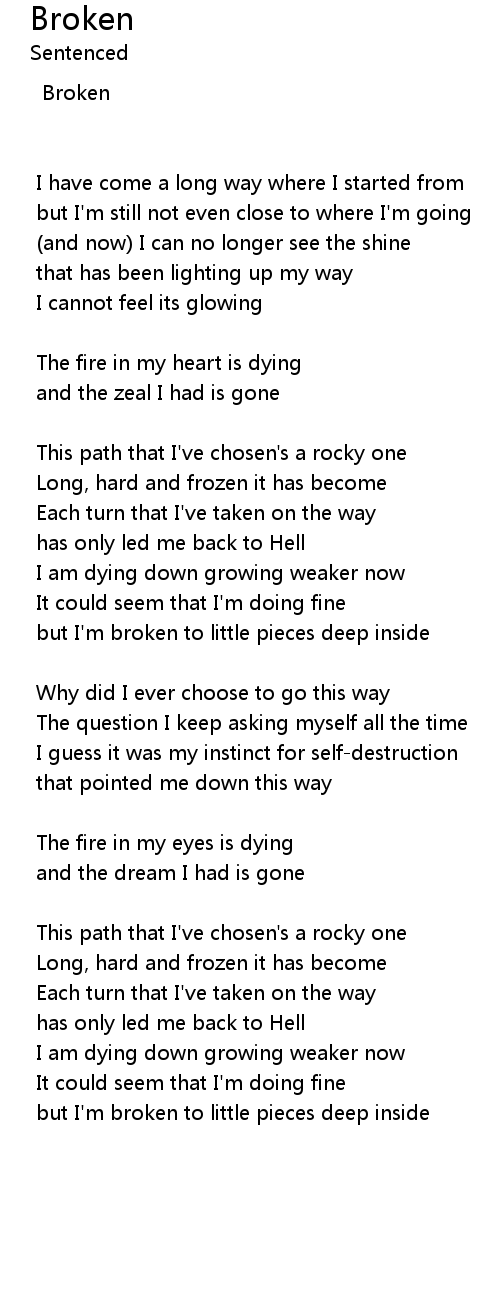 | but I'm broken to little pieces deep inside |