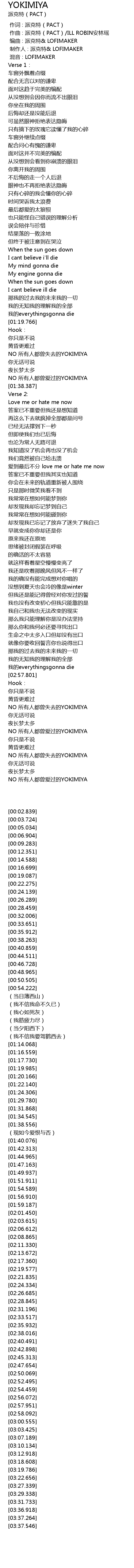 | [00:00.000] | 作词 : 派克特(PACT) |