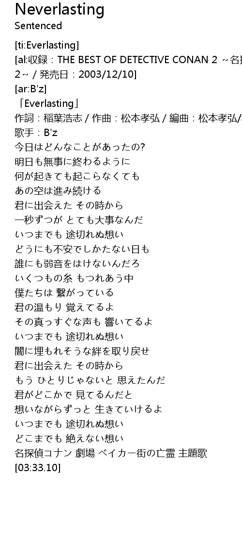 | [03:23.10] | 名探偵コナン 劇場 ベイカー街の亡霊 主題歌 |
