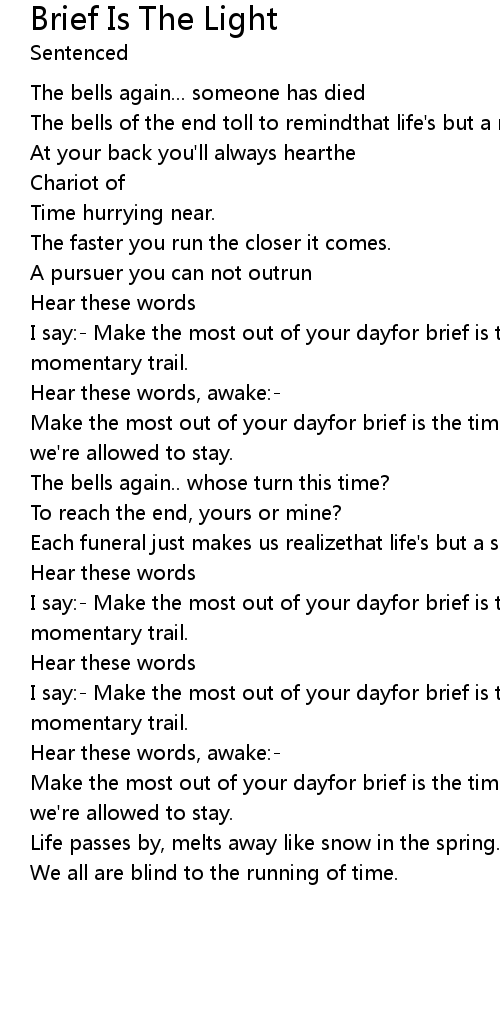 Make the most out of your dayfor brief is the time, so brief is the timethat we're allowed to stay.