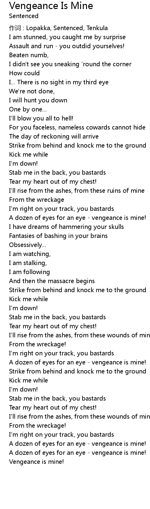 | 歌曲 | Vengeance Is Mine |