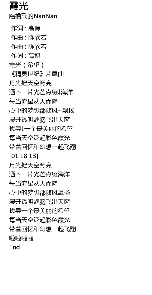 | [00:00.00] | 霞光(希望) |