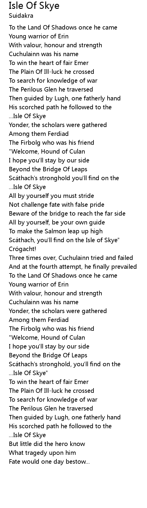 | Scá thach, you' ll find on the Isle of Skye" | |