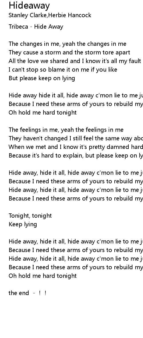 | Hide away, hide it all, hide away c' mon lie to me just on more time | |