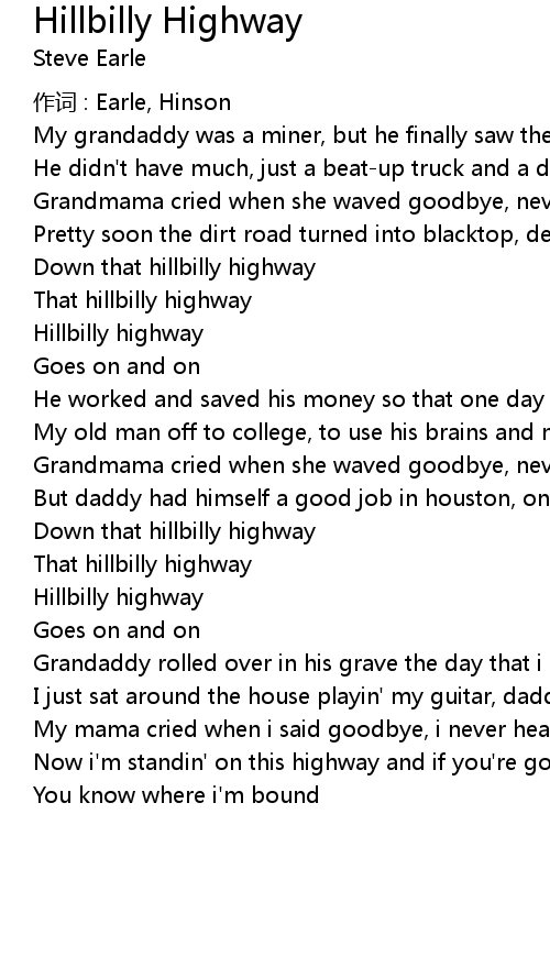 | 歌曲 | Hillbilly Highway |