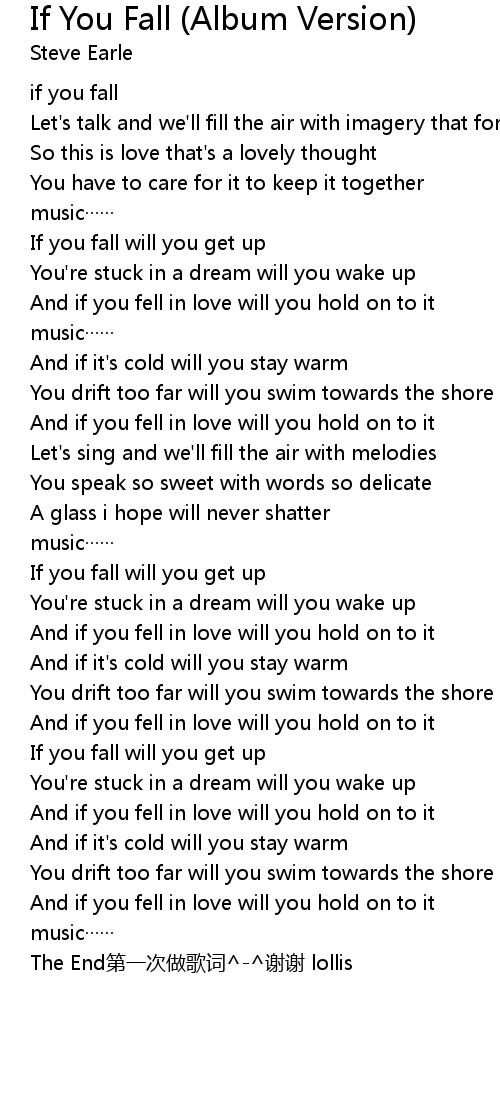 | [01:43.00] | If you fall will you get up |