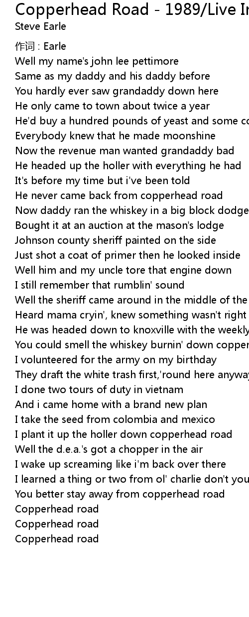 | 歌曲 | Copperhead Road - 1989/Live In Calgary |