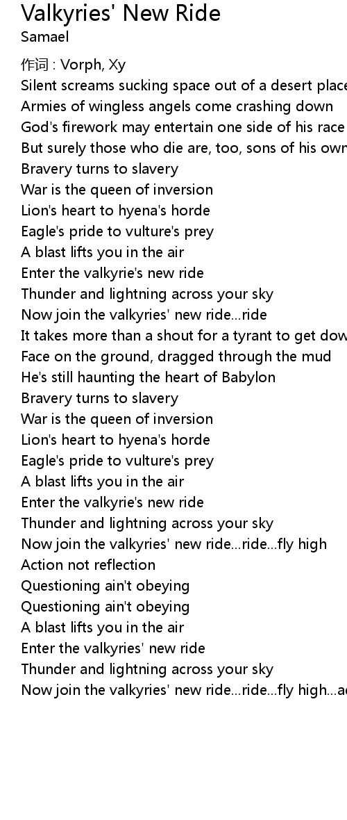| Now join the valkyries' new ride... ride... fly high... ad infinitum |