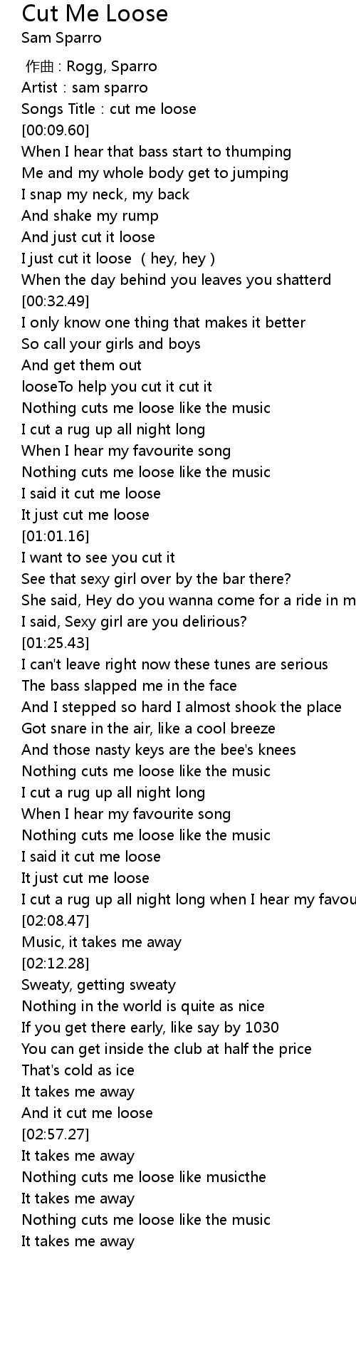 | [00:02.85] | Songs Title: cut me loose |