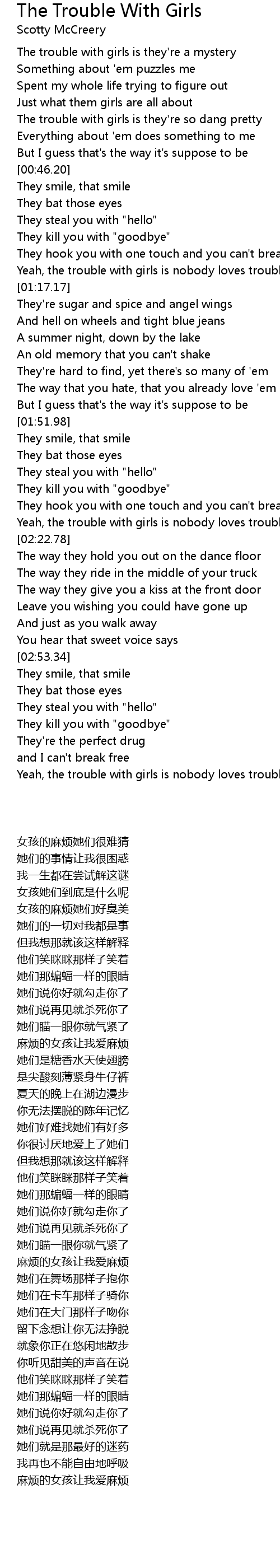 Yeah, the trouble with girls is nobody loves trouble as much as me |
