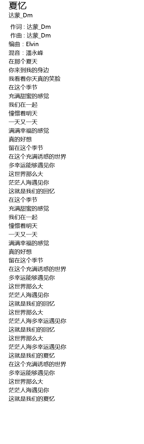 | [00:00.000] | 作词 : 达蒙_Dm |