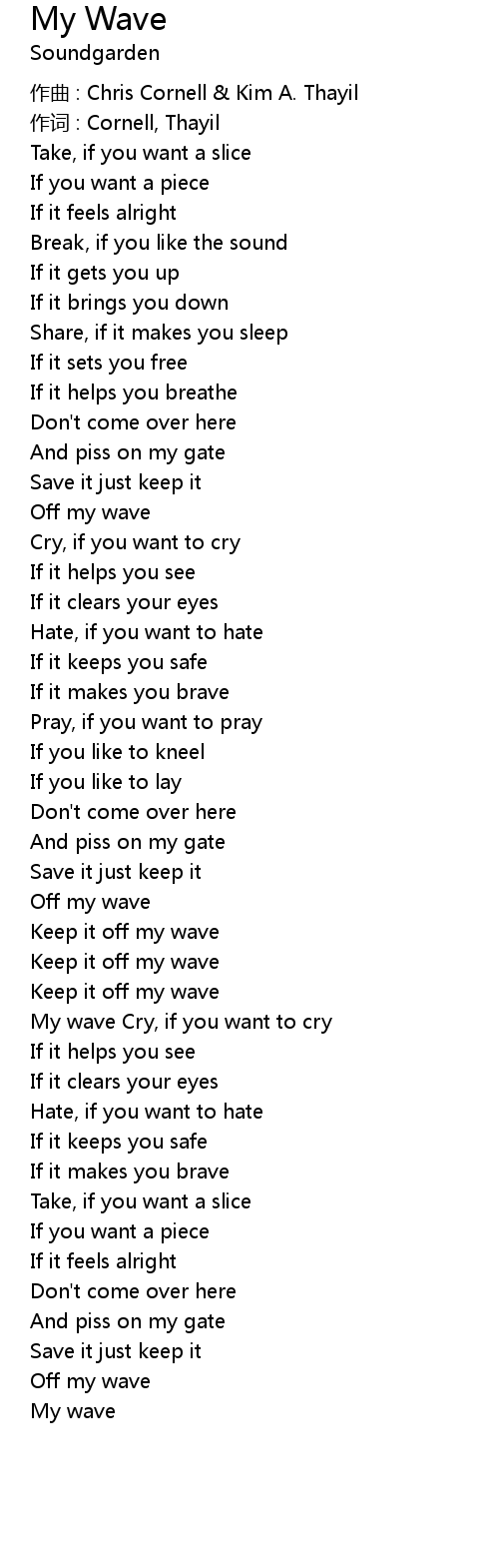 | My wave Cry, if you want to cry | |