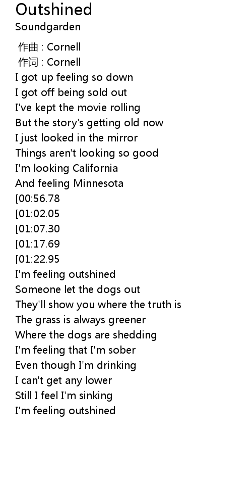 | [02:36.44][01:07.30] | That I'm down on my knees today |