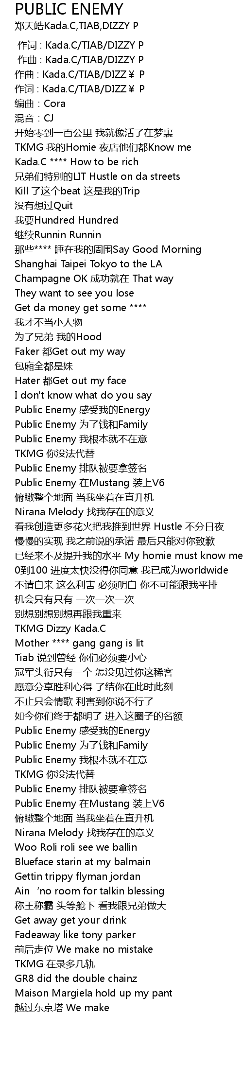 | [00:58.57] | Public Enemy wei le qian he Family |