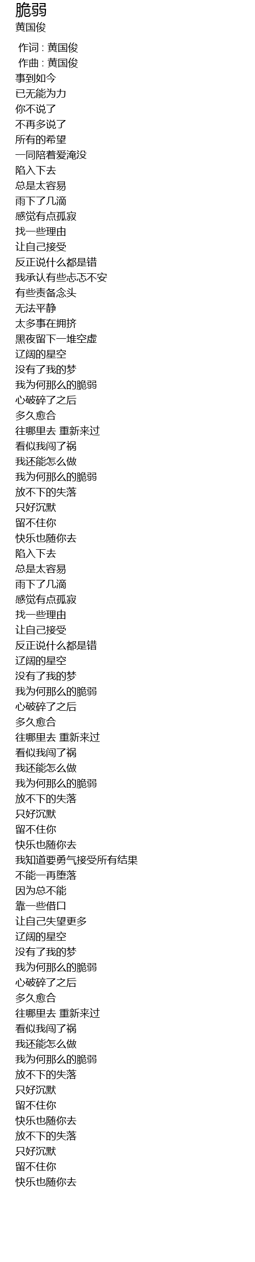| [00:00.000] | 作词 : 黄国俊 |
