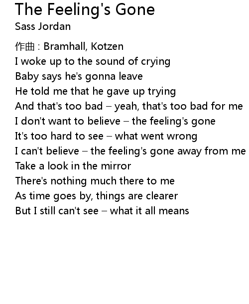 | 歌曲 | The Feeling's Gone |