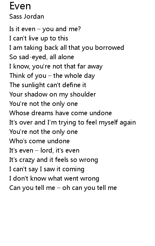 | It's even – lord, it's even | |
