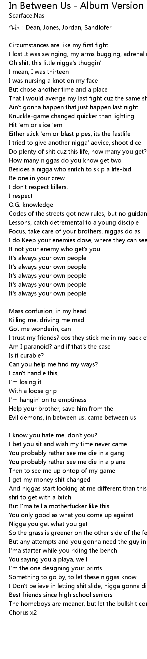 | The homeboys are meaner, but let the bullshit come between us | |