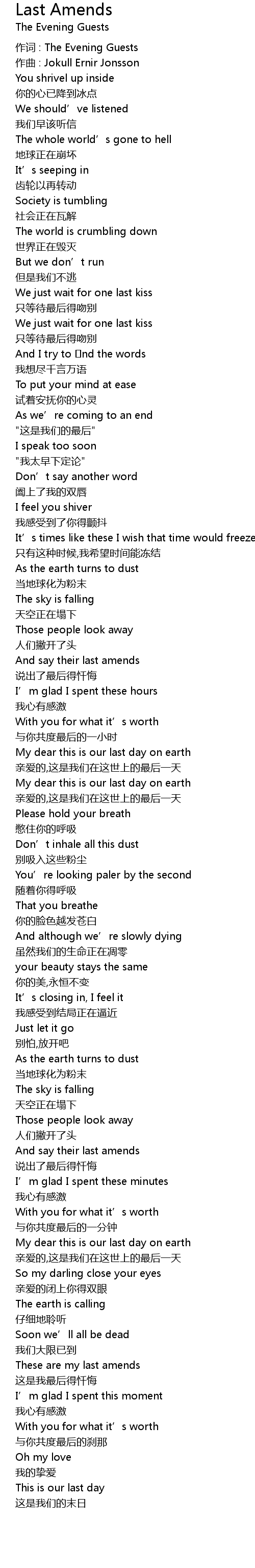 | 歌曲 | Last Amends |
