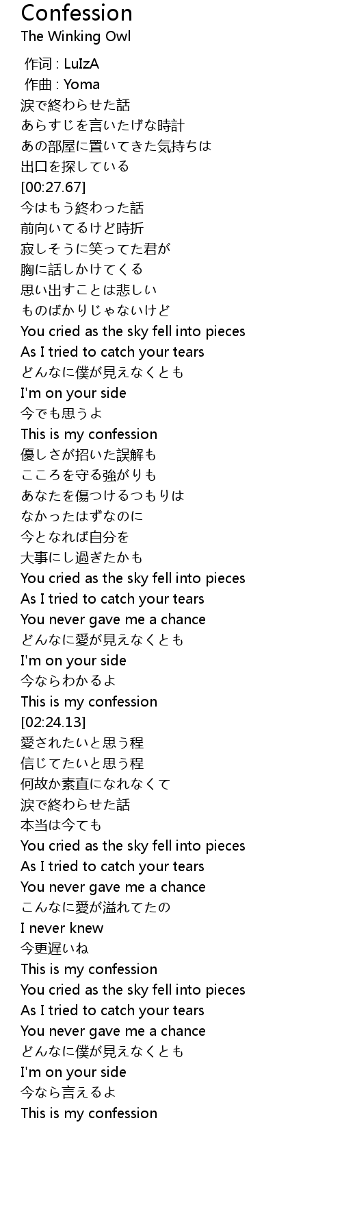 | [00:16.94] | あの部屋に置いてきた気持ちは |