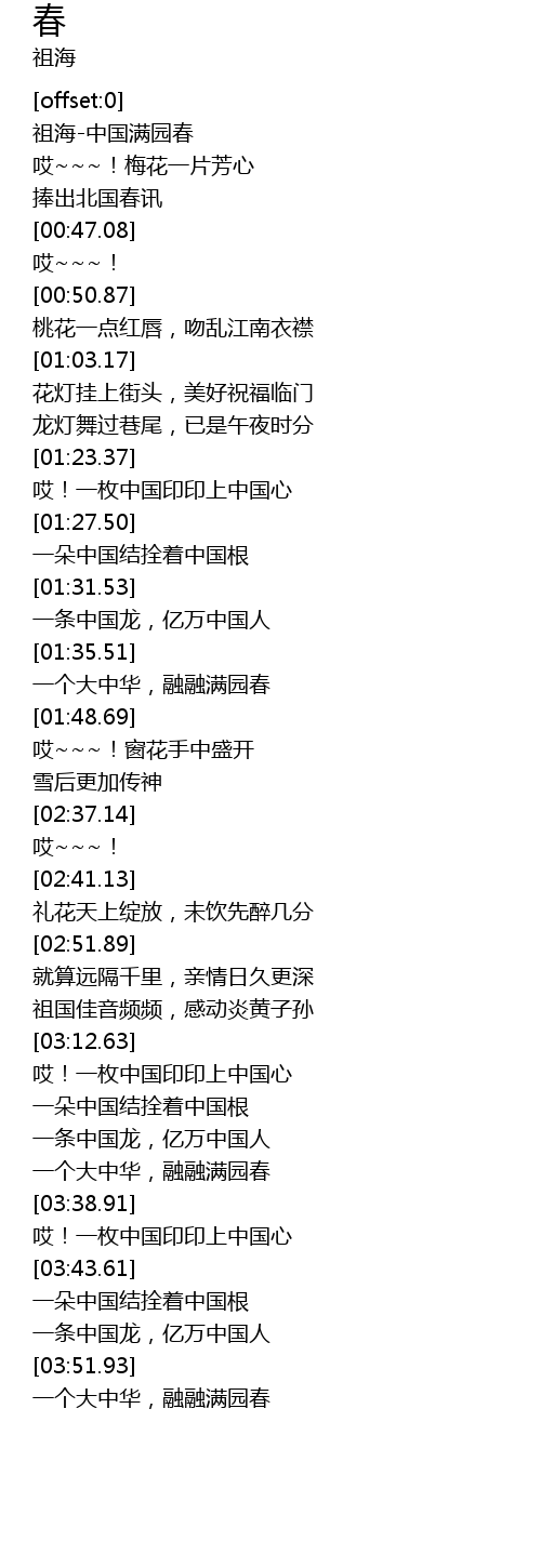 | [00:00.25] | zu hai zhong guo man yuan chun |