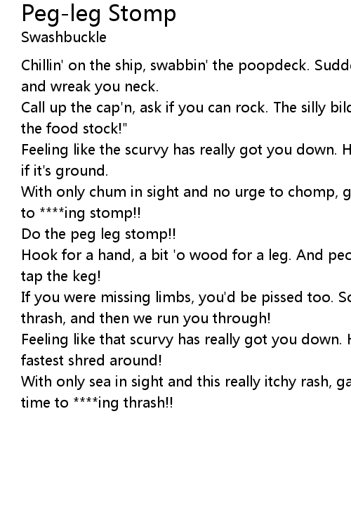 Chillin' on the ship, swabbin' the poopdeck. Suddenly have the urge to thrash and wreak you neck. |