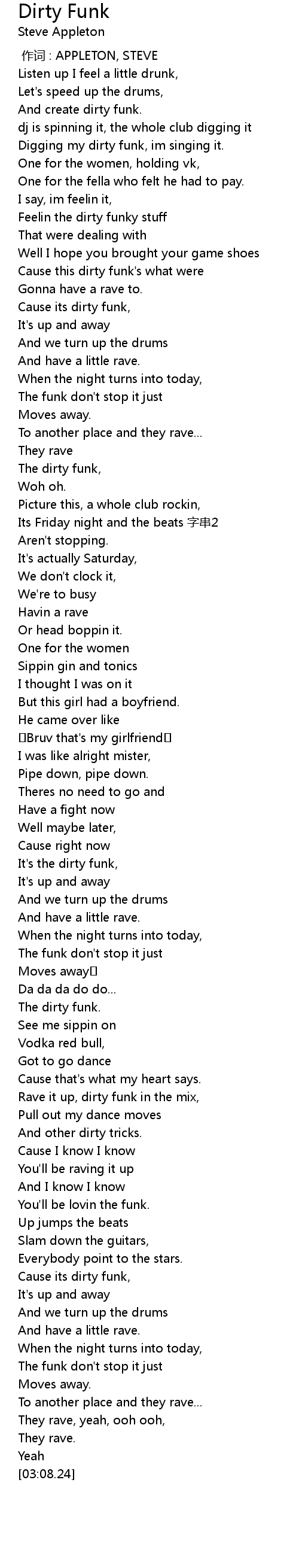 | [00:33.13] | Digging my dirty funk, im singing it. |
