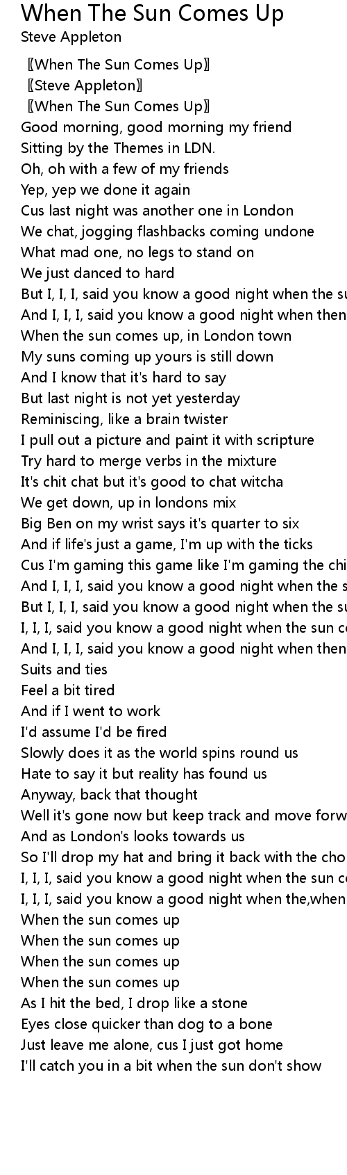| [01:22.56] | But I, I, I, said you know a good night when the sun comes up |