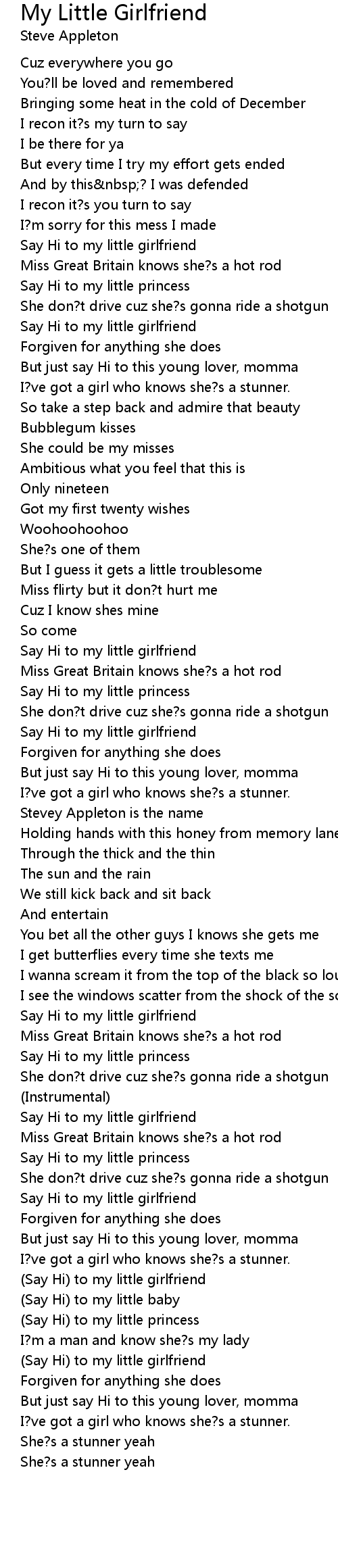 (Say Hi) to my little girlfriend |