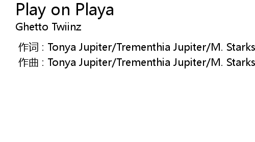 | [00:00.00-1] | 作词 : Tonya Jupiter/Trementhia Jupiter/M. Starks Leroy Edwards |