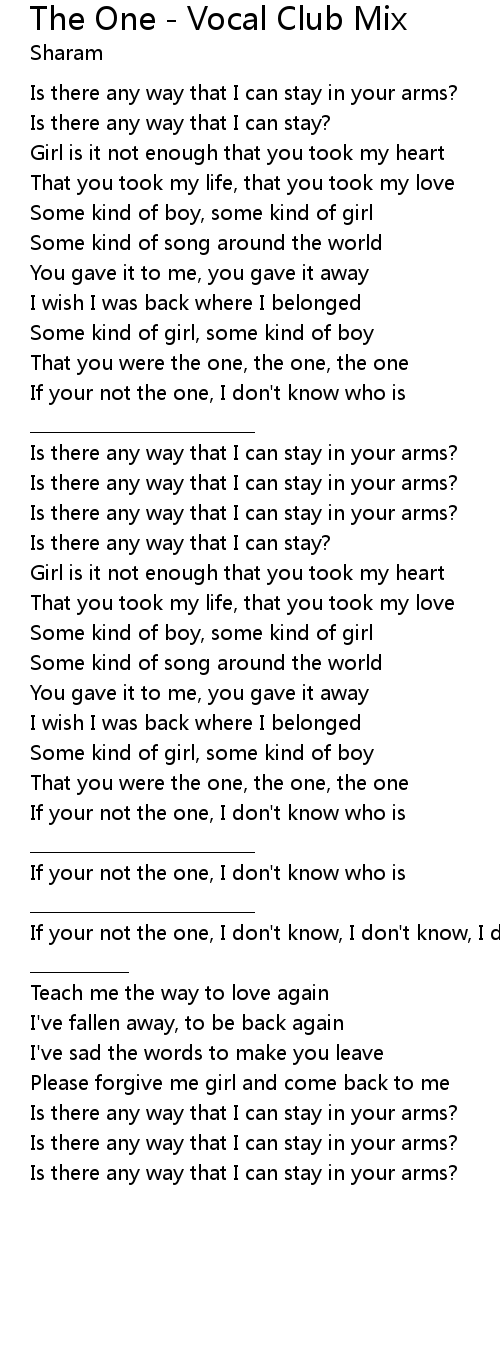 | If your not the one, I don't know, I don't know, I don't know | |
