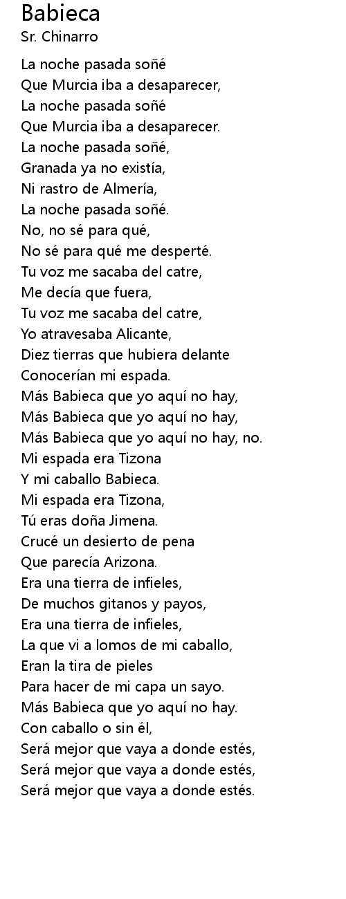 | Y mi caballo Babieca. | |