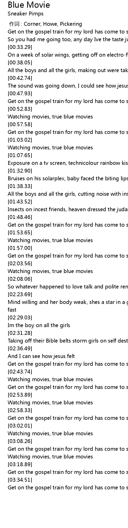 | [03:04.81] | Watching movies, true blue movies |
