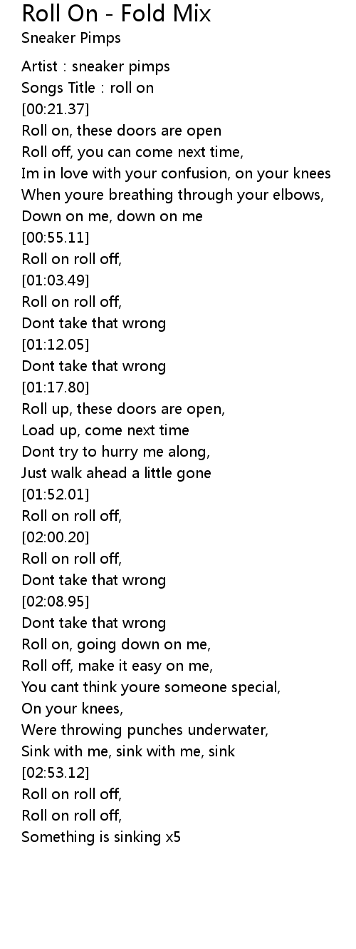 | [02:59.31] | Roll on roll off, |