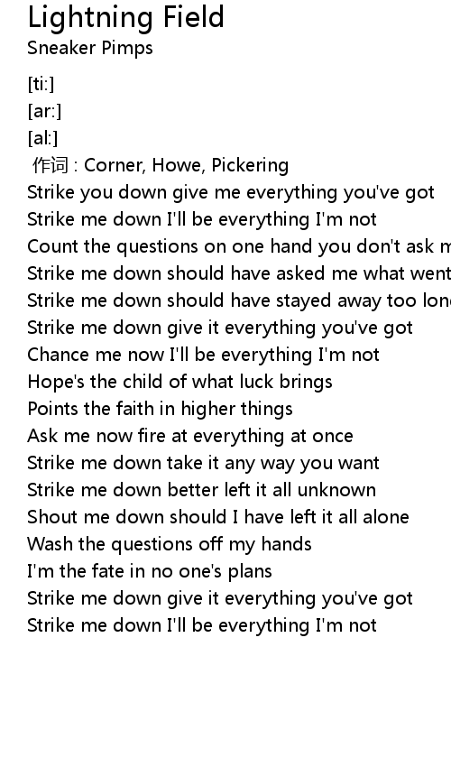 | [00:00.00] | 作词 : Corner, Howe, Pickering |