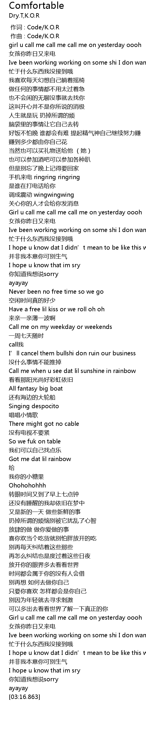 | [01:22.832] | Girl u call me call me call me on yesterday oooh |