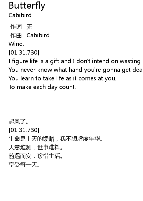 | [02:34.979] | I figure life is a gift and I don' t intend on wasting it. |