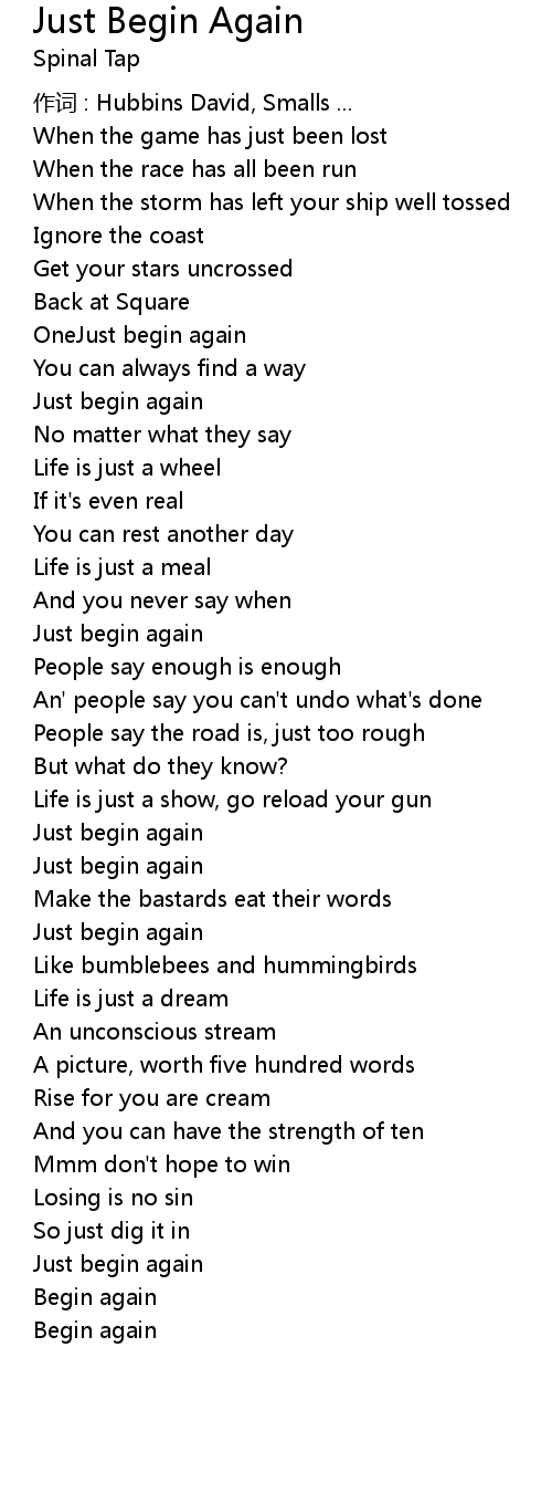 | Just begin again | |