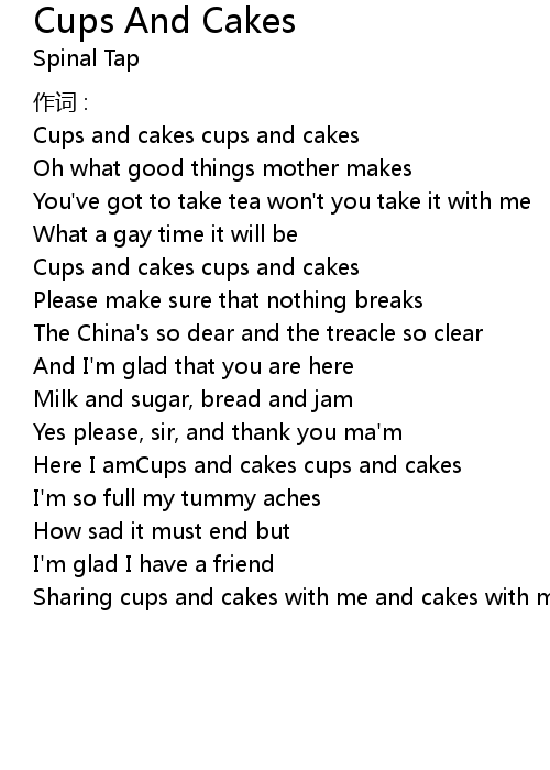 | 歌曲 | Cups And Cakes |