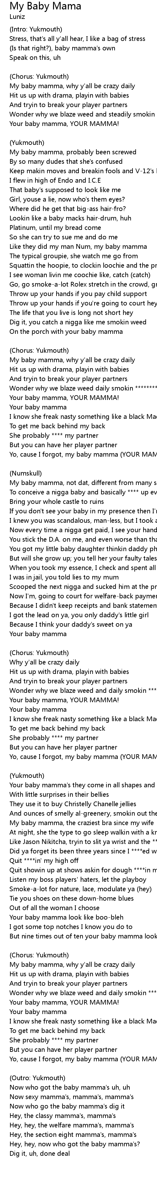 | Yo, cause I forgot, my baby mamma (YOUR MAMMA!) | |