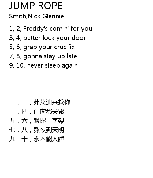 | [00:00.01] | 1, 2, Freddy's comin' for you |