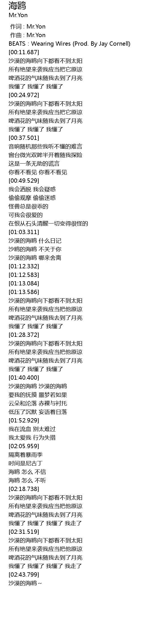 | [00:00.000] | 作词 : Mr.Yon |