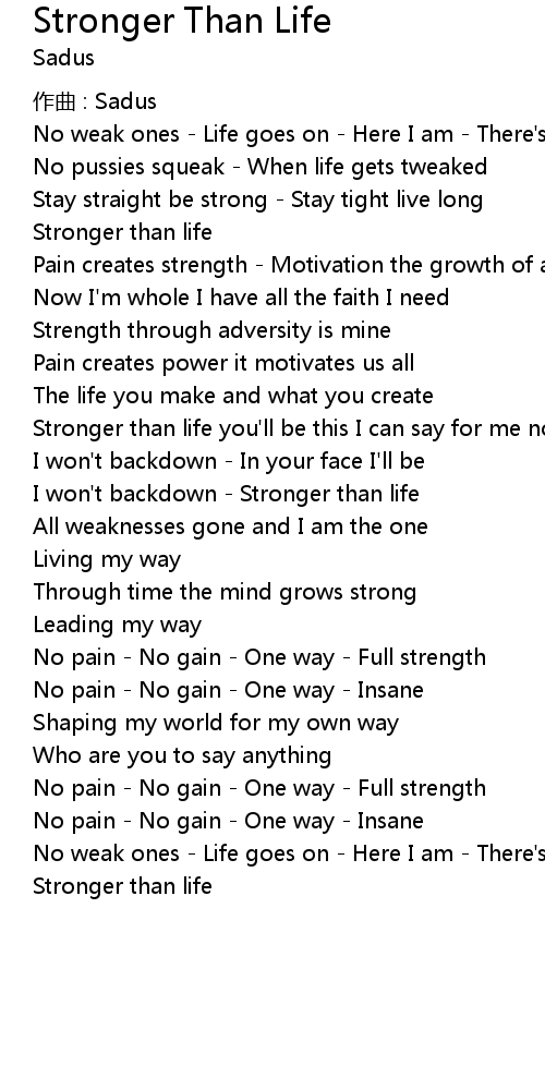 | 歌曲 | Stronger Than Life |