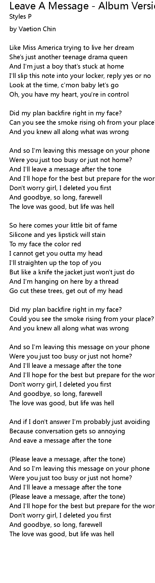Leave A Message - Album Version (Explicit) 歌词