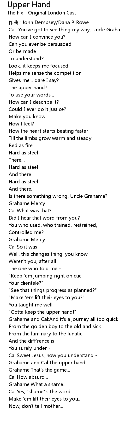 | [00:40.592] | The upper hand? |