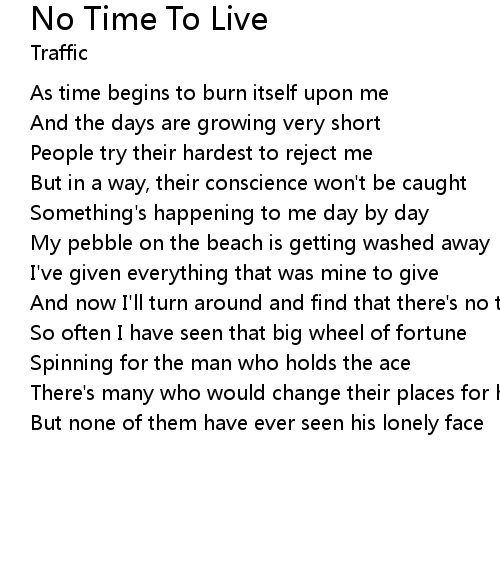 And now I'll turn around and find that there's no time to live |